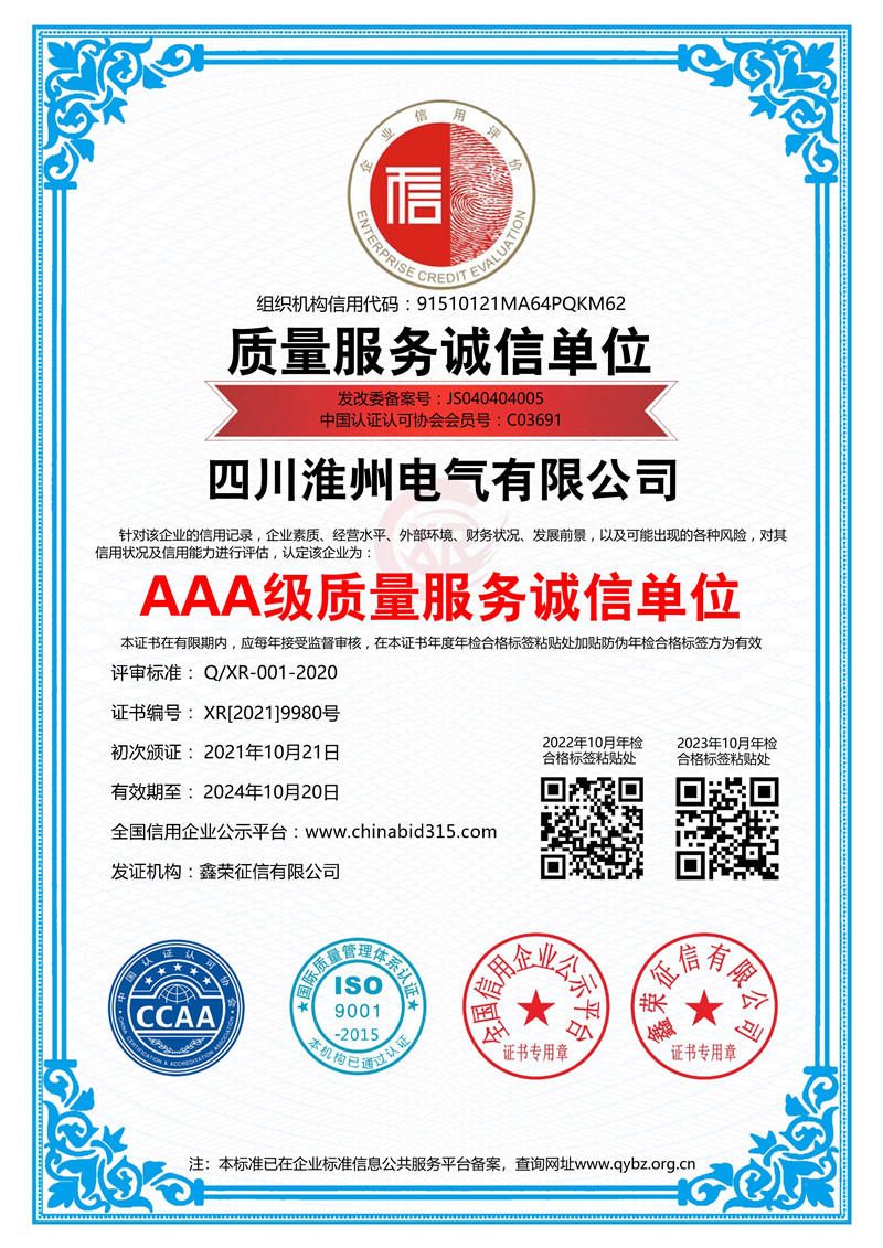 下一篇:AAA级重合同守信用企业