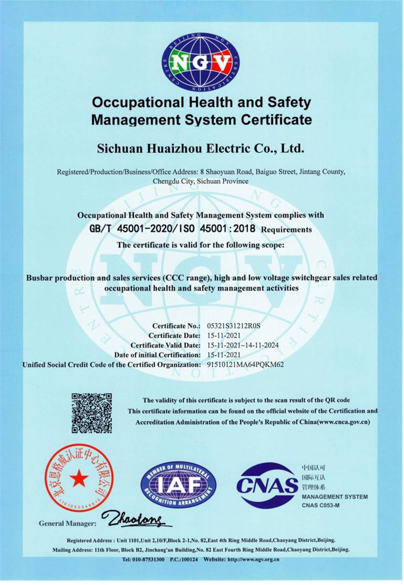 职业健康安全管理体系认证证书